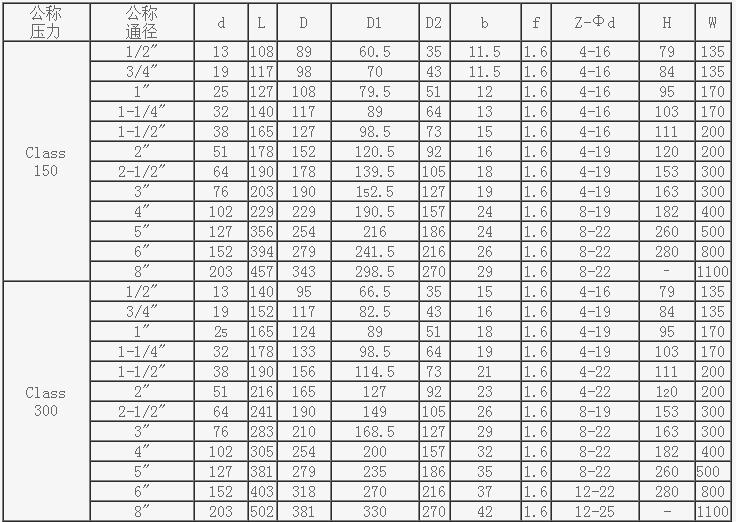 ☆壓力范圍:150LB~600LB