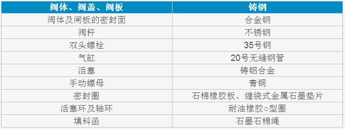 五、Z641H氣動(dòng)法蘭閘閥主要零件材料