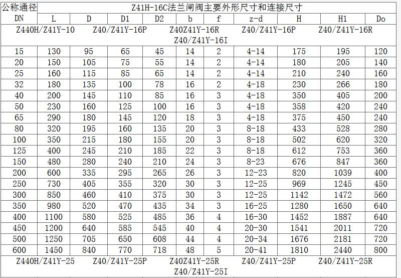 Z41Y手動(dòng)高壓閘閥主要尺寸表