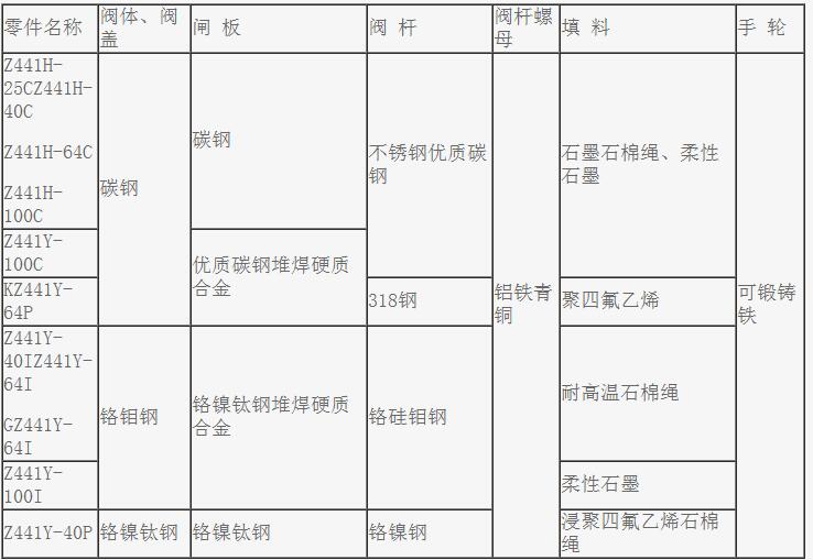 二、Z441H 正齒輪法蘭閘閥主要零件材料Materials Of main Parts :