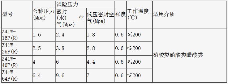 三、不銹鋼法蘭閘閥的性能參數: