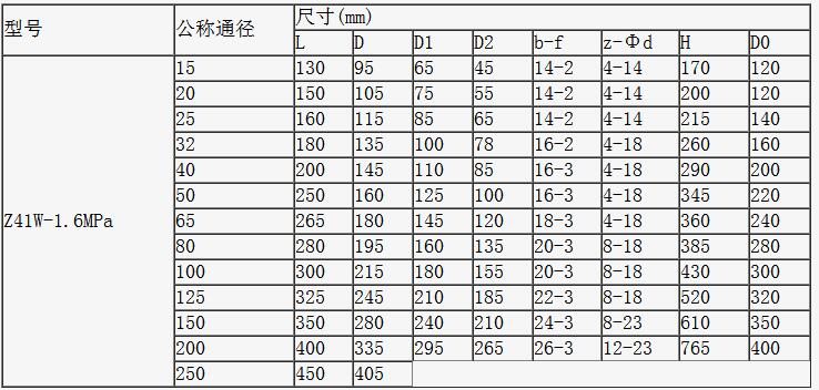四、不銹鋼法蘭閘閥主要外形尺寸和連接尺寸(mm):