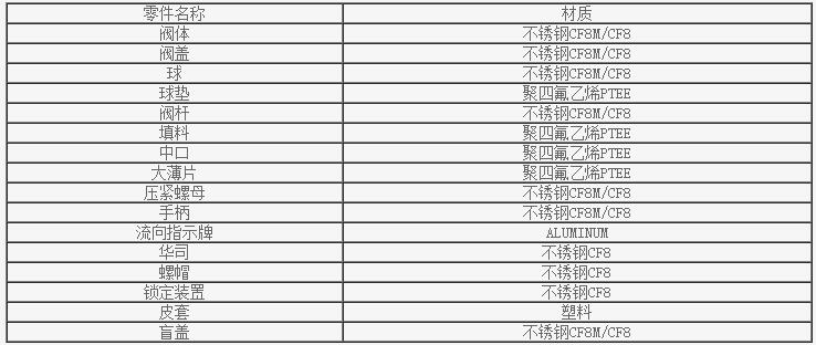 Q14F、Q15F-1000WOG高平臺內螺紋三通球閥主要零件材料
