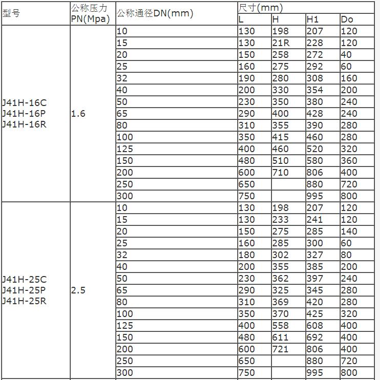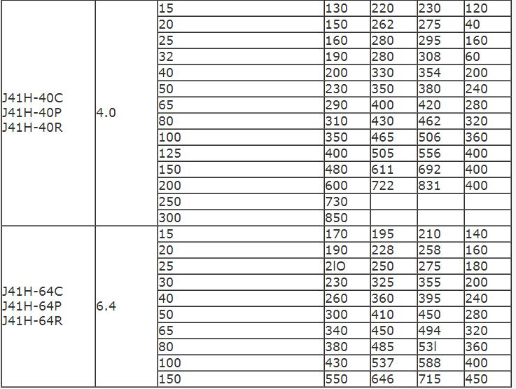 型號(hào):J41H-16C(鑄鋼)、J41H-16P(304)、J41H-16R(316)、J41H-25C、J41H-40C、J41H-64C、J41H-64P、J41H-64R