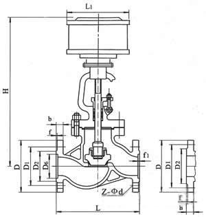 J641H氣動截止閥主要外形尺寸、連接尺寸: