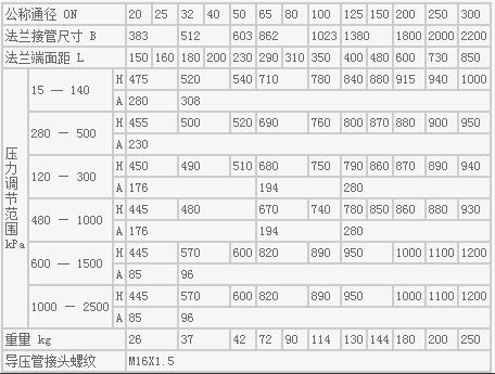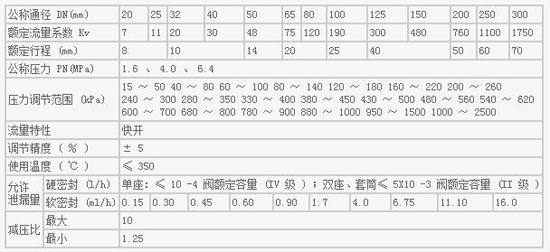 自力式壓力調節閥主要技術參數和性能指標
