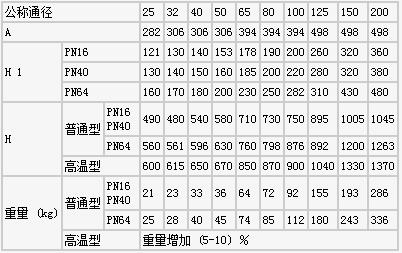 注:1、本表高溫型的高度與重量依PN16為依據。