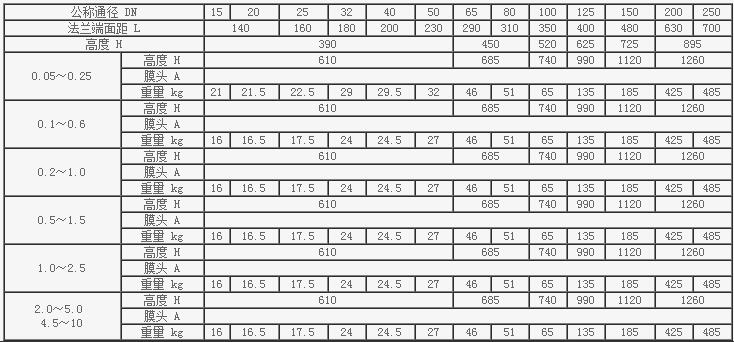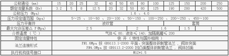 自力式壓差調節閥主要技術參數