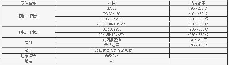 自力式微壓調(diào)節(jié)閥主要零件及推薦使用溫度范圍