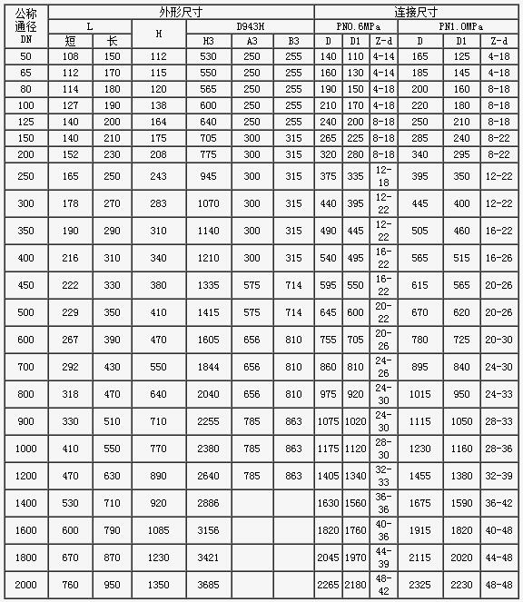 D943H電動法蘭蝶閥 連接尺寸
