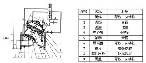 本公司生產(chǎn)的(DY30AX)緩開緩閉止回閥有閥體、閥蓋、閥瓣、閥桿、彈簧、導(dǎo)閥等零件組成。上閥蓋與下閥蓋之間為隔膜腔,隔膜腔內(nèi)設(shè)隔膜,隔膜與中心軸連接,中心軸另一端連接閥門,閥門與閥座接觸。水容器與上閥蓋進(jìn)水、出水控制孔連通,水容器與上閥蓋出水為節(jié)流連通,水容器與上閥蓋進(jìn)水為單向連通。