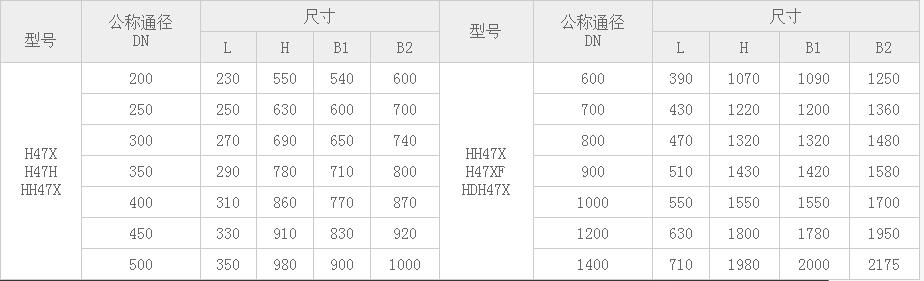 HH47、H47XF、HDH47X蝶式緩沖止回閥主要外形尺寸